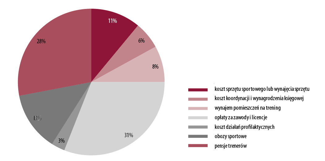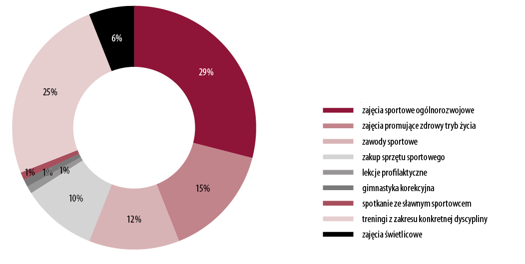 Na 51 projektów aż 34 należały do zakresu sportu profesjonalnego; dotyczyły one organizacji, w których trenowali zawodnicy, by wystartować w zawodach.